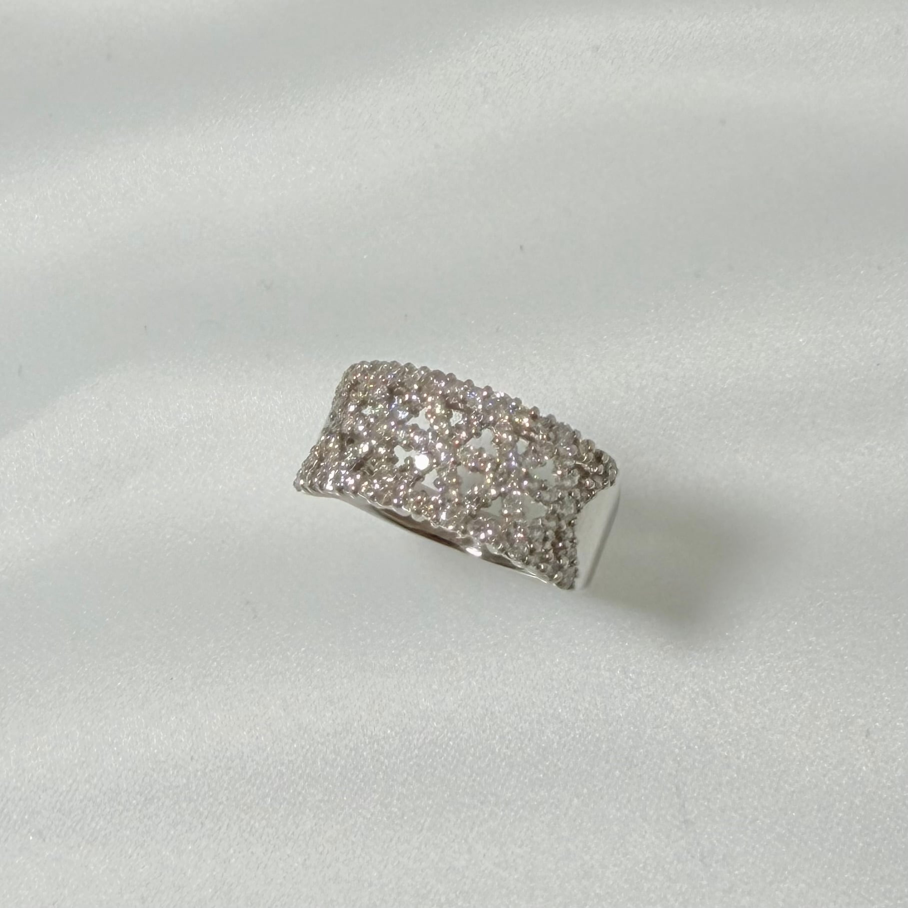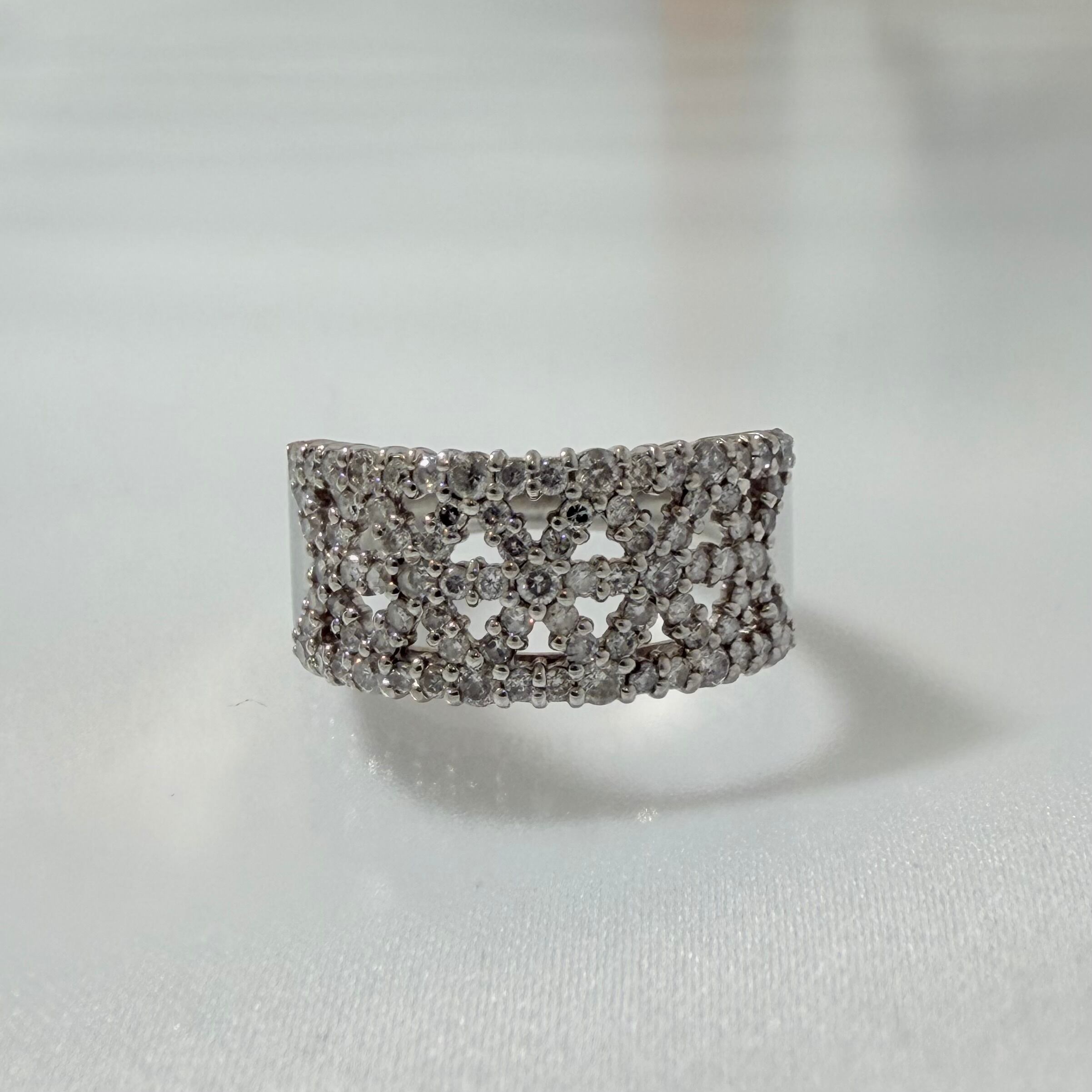ヴィンテージジュエリーの魅力が際立つpt900プラチナリングです。洗練された透かし模様と1.00ctのダイヤモンドがエレガントに輝き、特別な日や大切なシーンにふさわしい一品となっています。レースのような繊細なデザインは、手元を華やかに演出します。